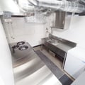 自動ドア戸袋がありますが柱が無いため面積が広く、最も増設自由度が高いキッチンです。(6.3㎡・ここだけ廊下からの段差無)