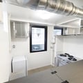 施設内で一番面積が広く窓もあるキッチンです。厨房機器の複数増設も可能です。(6.3㎡・3名体制での使用可能)